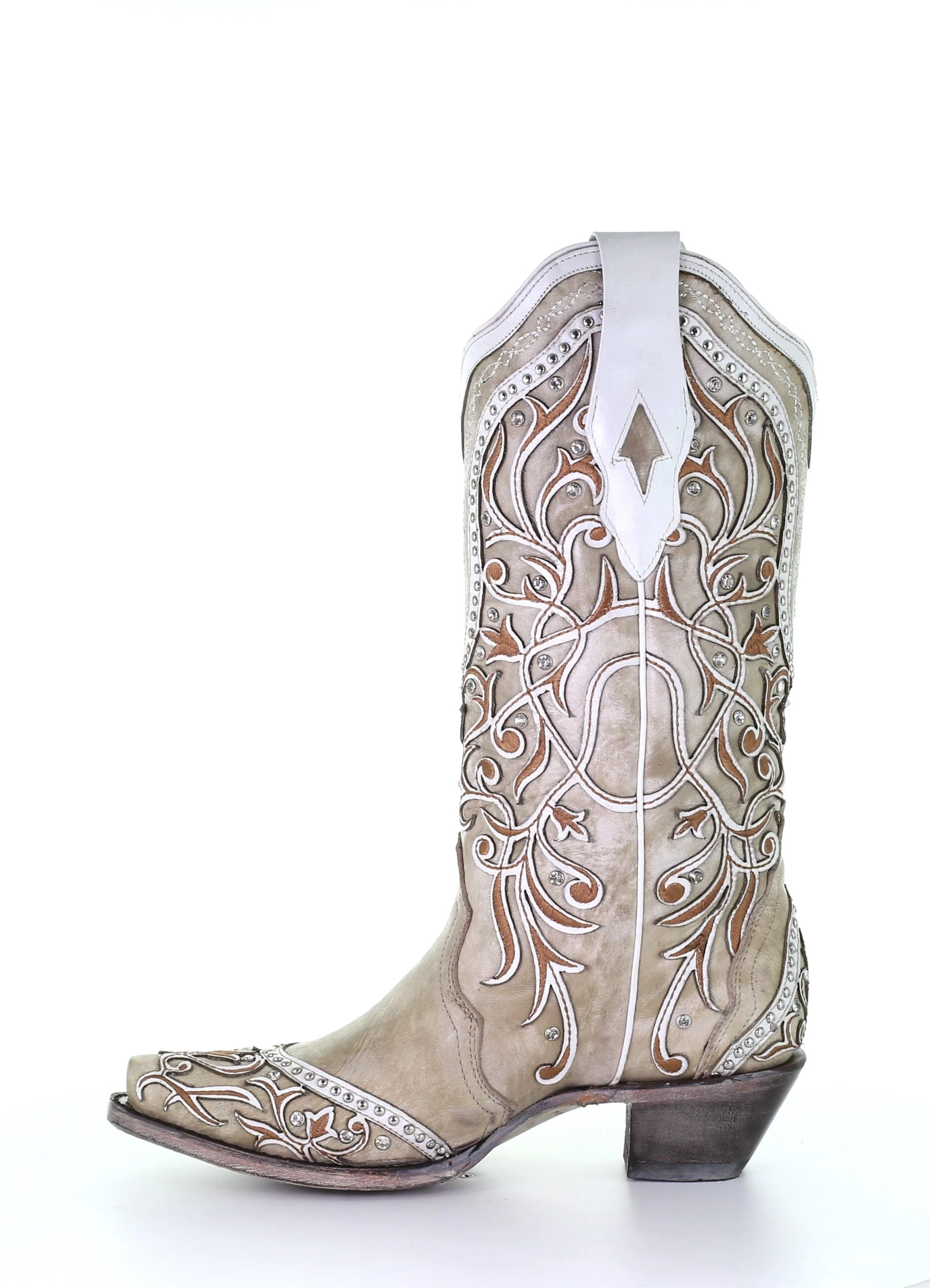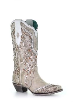 Women’s Corral Boots Snip Toe A3837 White Inlay & Embroidery